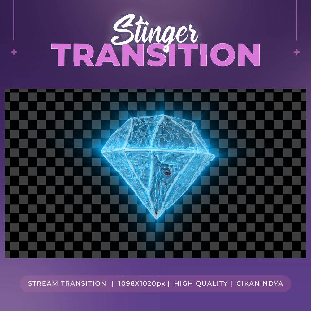 Animated Stinger Transition Blue Crystal Diamond | Elegant & Radiant Overlay for Streamers | Vtuber Stinger | Twitch Transition | Shiny Stream Graphics
