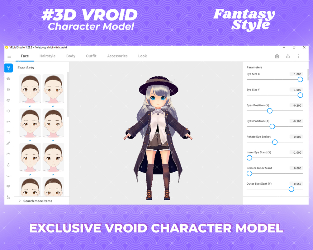 Anime-Inspired Virtual Companion: Vroid 3D Persona - Fioletovyy chibi witch 3D Model Character