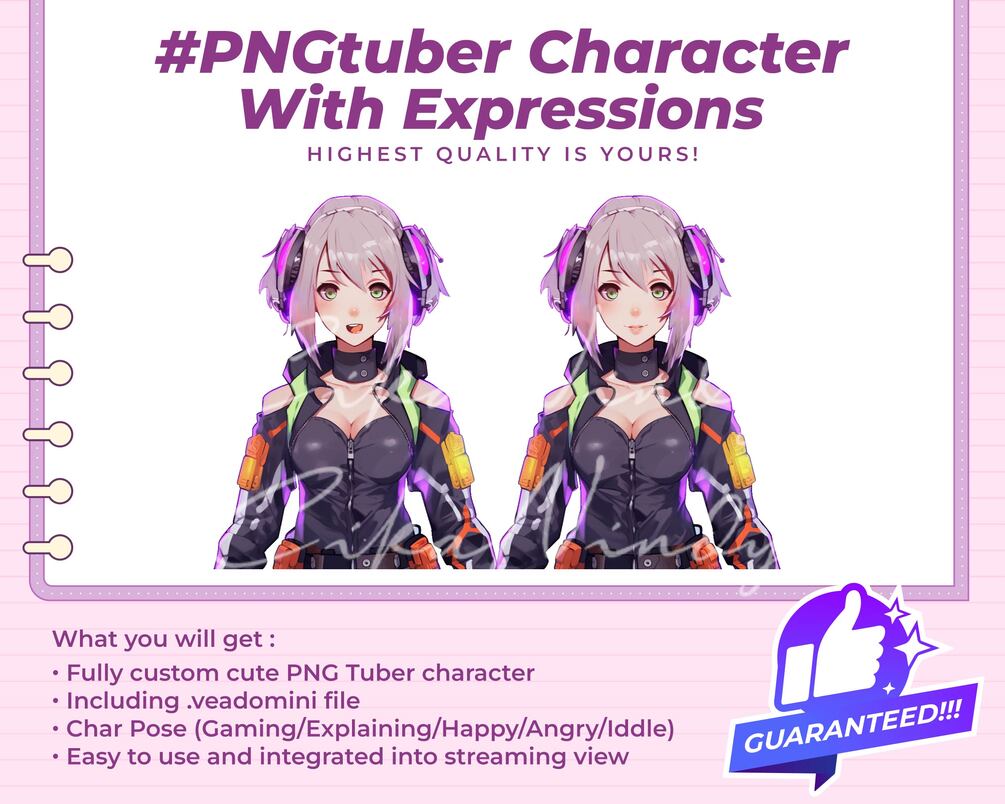 PNGTuber | Captivate Your Audience with a Beautiful PNG Tuber Purple Headphone | 2 Poses | Pngtuber Premade | Pngtuber Model | PNG Tuber