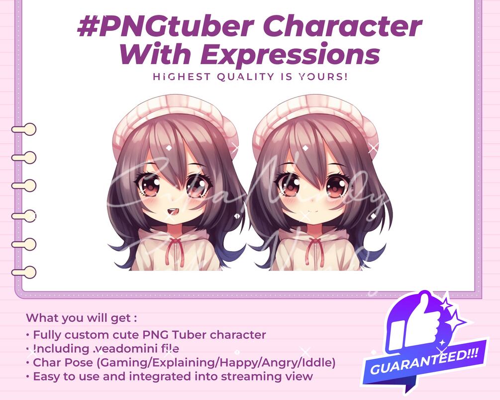 PNG Tuber | Enhance Your Stream with a PNG Tuber Cute Character | 2 Expressions | Pngtuber Premade | Pngtuber Commission | Pngtuber Girl