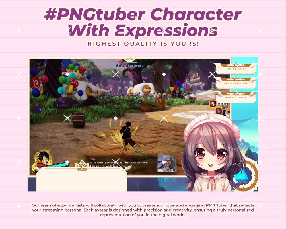 Take your first step into the Vtuber world with a PNG Tuber, a simple yet effective way to express yourself virtually. Perfect for beginners or creators seeking a minimalist approach to streaming, this product offers vibrant, high-quality visuals that bring your character to life.
