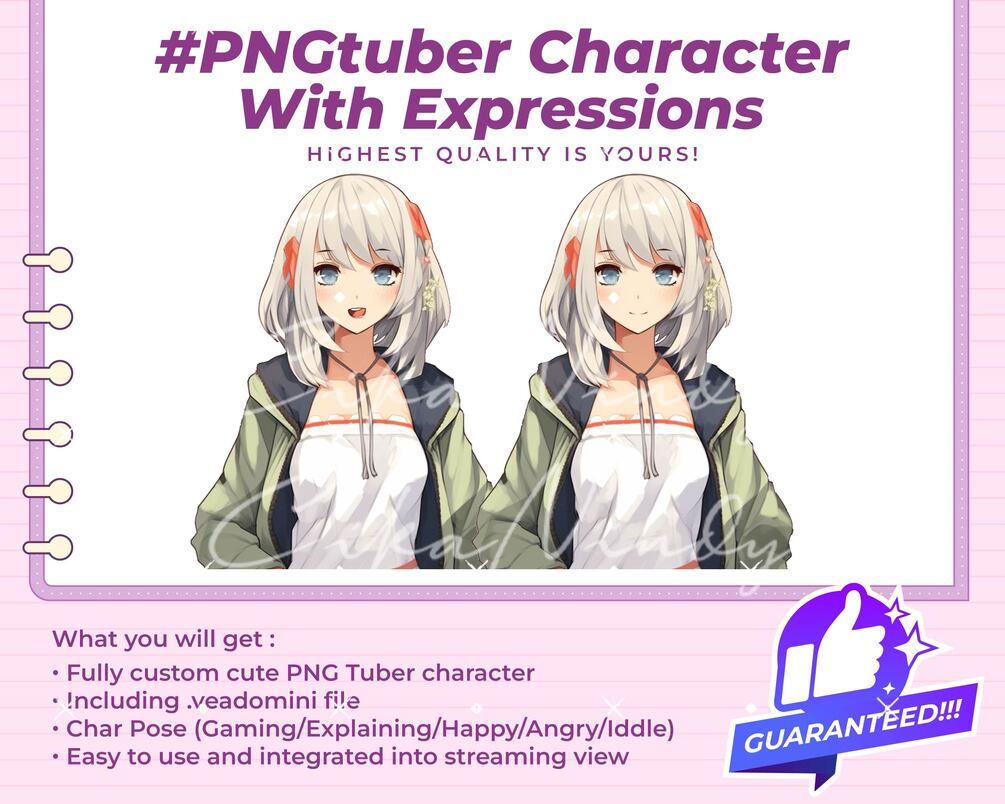 Take your first step into the Vtuber world with a PNG Tuber, a simple yet effective way to express yourself virtually. Perfect for beginners or creators seeking a minimalist approach to streaming, this product offers vibrant, high-quality visuals that bring your character to life.