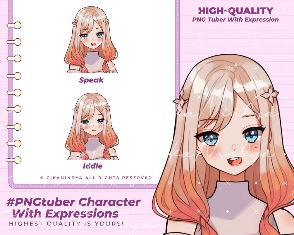Take your first step into the Vtuber world with a PNG Tuber, a simple yet effective way to express yourself virtually. Perfect for beginners or creators seeking a minimalist approach to streaming, this product offers vibrant, high-quality visuals that bring your character to life.