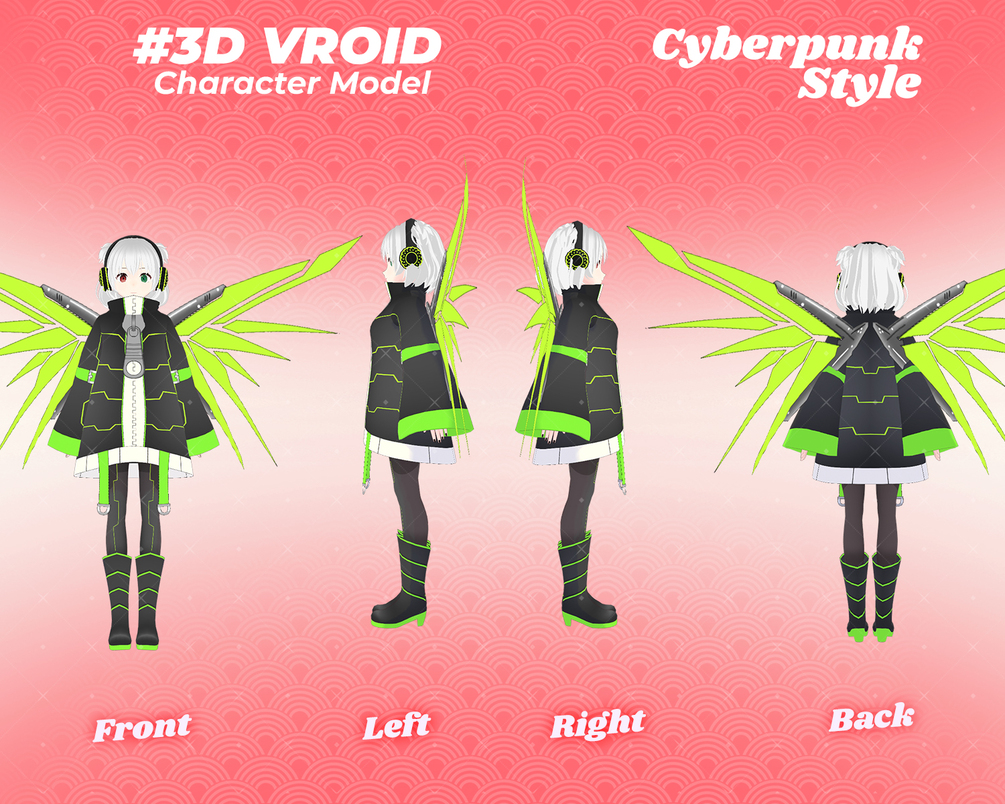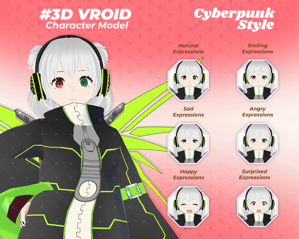 3D Vroid Character, 3d Model, Vtuber Model Free, Virtual Avatar - Futuristic and Stylish 3D Vroid Character Cyber Anime Girl for Streamers