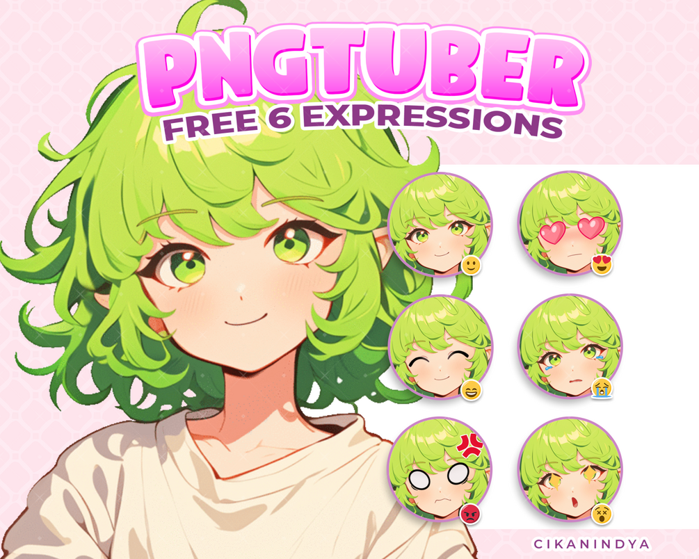 PNG Tuber | Messy Green Hair Elf Girl with Lime Eyes | Get 6 Poses | Cute Anime | Pngtuber Avatar | VTuber Assets