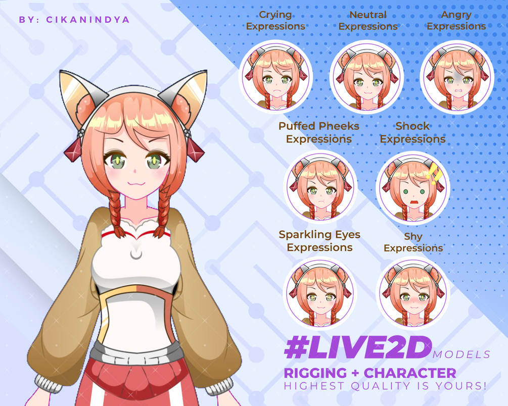 - Stream-Ready Vtuber Character + Rigging – Fully functional for streaming and animations.